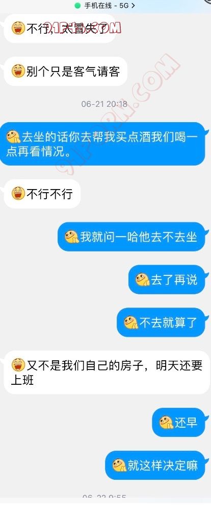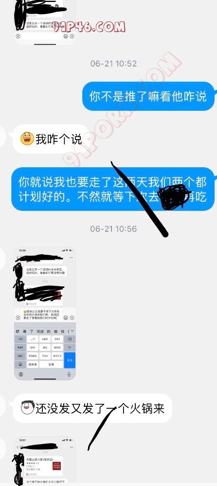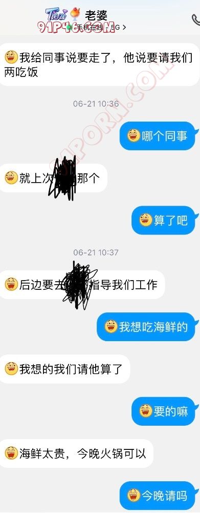 下面是那天和他同事一起吃饭我们俩的聊天记录,在这之前几天我老婆还说约人家一个男的来家里吃饭被我否决了。后面我细想了一下。肯能是我说多了。她在试探我。结果我没同意。后面我就有点后悔。吃完饭后我就给我老婆发了下面的信息